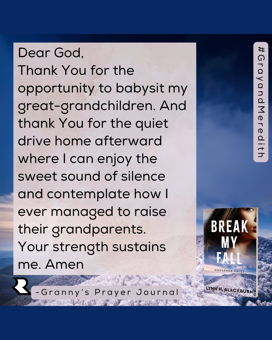 Granny Quinn’s prayer journal has remained a popular feature. She’s going on hiatus for a few months, but don’t worry! She’ll be back! She’s going to have a LOT to say about Mo and Bronwyn…